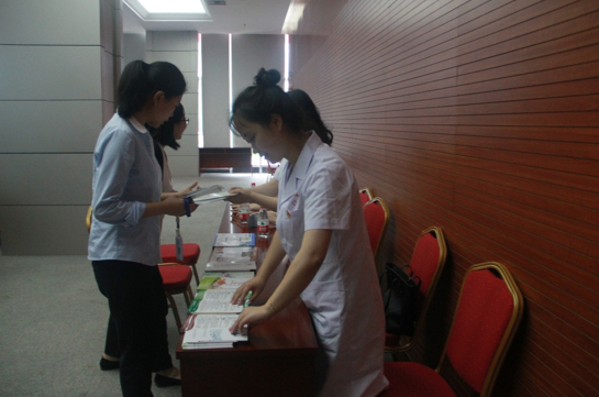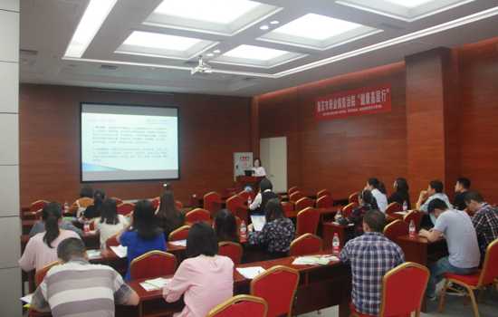 講座開始前,重慶市第六人民醫(yī)院的四位白衣天使在現(xiàn)場(chǎng)為大家免費(fèi)測(cè)量了血壓并發(fā)放了健康知識(shí)小卡片。預(yù)熱活動(dòng)結(jié)束后,陳於汝醫(yī)師從健康與亞健康、辦公室人員保健、心理保健和健康體檢常見問題四個(gè)部分進(jìn)行了理論知識(shí)講解和案例分析,并對(duì)保健動(dòng)作及保健方法進(jìn)行了規(guī)范的示范,對(duì)現(xiàn)場(chǎng)體驗(yàn)保健動(dòng)作的職工進(jìn)行了科學(xué)的指導(dǎo)。