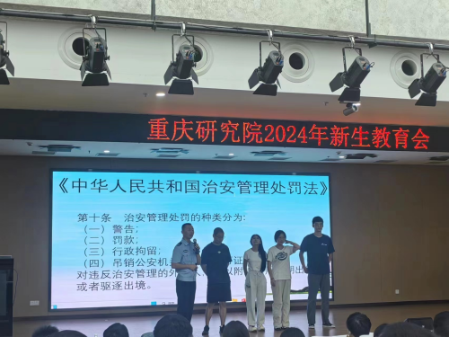 為幫助2024年新入院研究生堅定理想信念,厚植愛國愛院情懷,快速完成角色轉變,融入重慶研究院院內生活,順利開展科研學習生活,學生處組織開展了2024年研究生入院教育大會。院長劉鴻、學生處及教務處工作人員、各學院輔導員、全體新入院研究生參加了本次大會。大會由學生處處長李向東主持。?