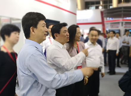 中國民用航空局局長馮正霖(前排左二)、中國民航干部管理學院黨委書記沙洪江(前排左一)等現(xiàn)場參觀
