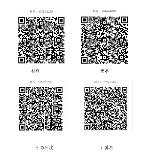 4)報(bào)名系統(tǒng)中審核通過的營員請按學(xué)科方向掃描下方二維碼分別加入對應(yīng)的夏令營聯(lián)系群,后續(xù)通知將在群內(nèi)進(jìn)行發(fā)布。