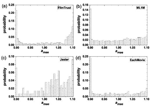在基于推薦系統(tǒng)研究中廣泛應用的一個基準算法(Slope-One算法)方面,研究團隊提出了一種個性化算法,該算法針對用戶的興趣行為偏好,計算用戶相關的算法參數(shù)值,來達到推薦個性化的目的。實驗結果表明,相對固定參數(shù)算法,算法個性化參數(shù)可以有效提升推薦精度;為了解決靜態(tài)推薦算法在面對動態(tài)數(shù)據(jù)集時存在效率低下,甚至無法運行的問題,研究團隊提出了一種增量式Slope-One推薦算法,用于降低推薦算法的計算復雜度。主要是基于Slope-One靜態(tài)算法的更新規(guī)則,通過計算數(shù)據(jù)更新來計算相對應的參數(shù)更新。研究結果表明,相對于靜態(tài)算法,增量式算法在保證推薦精度的同時,具有較短的運行時間;為了驗證推薦算法的長期有效性,研究團隊提出了一種基于推薦算法驅動的在線系統(tǒng)演化模型,該模型通過二部分圖網(wǎng)絡來模擬真實在線系統(tǒng)當中用戶選擇和信息推薦長期交互的復雜過程?;谠撗莼P停瑢δ壳傲餍械亩喾N推薦算法長期有效性進行了對比分析。研究結果表明,在推薦算法長期運行過程中,基于優(yōu)化的推薦算法(如Latentfactormodel,LFM)更有利于保證系統(tǒng)獲得較高的推薦精度,而基于實體關系的推薦算法(如Item-based CollaborativeFilter, ICF)更傾向于保證系統(tǒng)的推薦多樣性和新穎性。