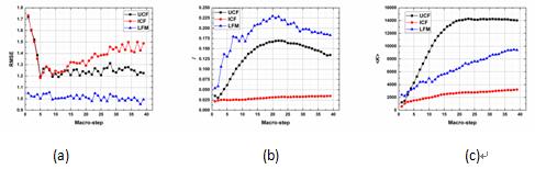 不同推薦算法在動態(tài)演化模型上的性能表現(xiàn)(a)推薦精度(b)推薦多樣性(c)推薦新穎性