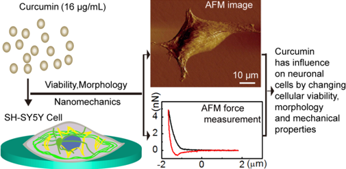 細(xì)胞形態(tài)及力學(xué)性質(zhì)是細(xì)胞生物物理性能的重要組成部分,開展相關(guān)研究對(duì)深入認(rèn)識(shí)細(xì)胞的生物學(xué)功能和生理性狀具有重要的理論和實(shí)際意義。姜黃素是一種天然生物活性化學(xué)物質(zhì),被普遍認(rèn)為有可能用于預(yù)防和防止神經(jīng)退行性疾病如帕金森癥、老年癡呆癥和中風(fēng)等,具有重要的臨床醫(yī)學(xué)意義。然而,關(guān)于姜黃素與神經(jīng)細(xì)胞的作用機(jī)制研究還很匱乏。