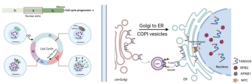 該研究首次報(bào)道TANGO6通過(guò)兩次跨膜結(jié)構(gòu)域錨定在COPI囊泡,攜帶RPB2(RNA聚合酶II第二大亞基)。隨后通過(guò)SNARE復(fù)合體介導(dǎo)的膜融合進(jìn)入內(nèi)質(zhì)網(wǎng),在內(nèi)質(zhì)網(wǎng)駐留蛋白LRRC59的協(xié)助下到達(dá)核孔復(fù)合體,并與核輸入蛋白KPNB1相互作用進(jìn)入細(xì)胞核。進(jìn)一步證實(shí)TANGO6攜帶RPB2通過(guò)COPI囊泡轉(zhuǎn)運(yùn)介導(dǎo)入核是驅(qū)動(dòng)細(xì)胞增殖的關(guān)鍵,且該機(jī)制對(duì)于小鼠HSCs的擴(kuò)增不可或缺。該研究揭示的TANGO6通過(guò)COPI囊泡轉(zhuǎn)運(yùn)調(diào)控細(xì)胞增殖的新機(jī)制為實(shí)現(xiàn)有效擴(kuò)增HSCs或作為潛在靶點(diǎn)來(lái)緩解和治療腫瘤提供新的參考。
