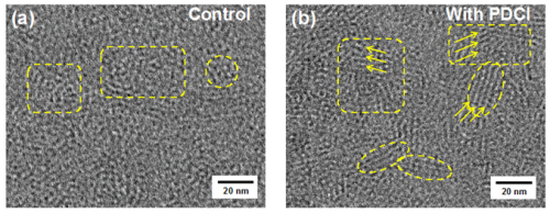 有機(jī)半導(dǎo)體材料在溶液中預(yù)聚集直接影響后續(xù)成膜及光電性能。對(duì)于溶液中有機(jī)半導(dǎo)體聚集行為的直接觀測(cè),有助于解析這一類(lèi)超越分子層次的特殊構(gòu)效關(guān)系。冷凍電鏡可以將溶液態(tài)的分子迅速冷凍定型,由此可以直觀揭示有機(jī)分子在溶液中的聚集行為。近期,中國(guó)科學(xué)院重慶綠色智能技術(shù)研究院(以下簡(jiǎn)稱(chēng)重慶研究院)研究人員與沙特阿卜杜拉國(guó)王科技大學(xué)的研究人員合作,通過(guò)冷凍電鏡對(duì)有機(jī)光伏材料分子的溶液聚集行為進(jìn)行了研究,揭示了溶液聚集態(tài)對(duì)成膜的影響,指導(dǎo)獲得高效率的有機(jī)光伏電池,相關(guān)工作以“Insights into Pre-aggregation Control of Y-series Non-fullerene Acceptors in Liquid State for Highly Efficient Binary Organic Solar Cells”為題發(fā)表于《先進(jìn)材料》(Adv. Mater. 2024, 10.1002/adma.202402833)。