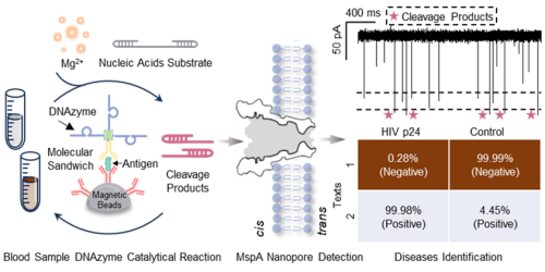 圖一:分子三明治和DNAzyme催化反應(yīng)協(xié)同的納米孔疾病抗原高效檢測