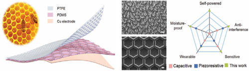 進(jìn)展二:仿生蜂巢結(jié)構(gòu)的微納力敏界面實(shí)現(xiàn)高信噪比柔性傳感器